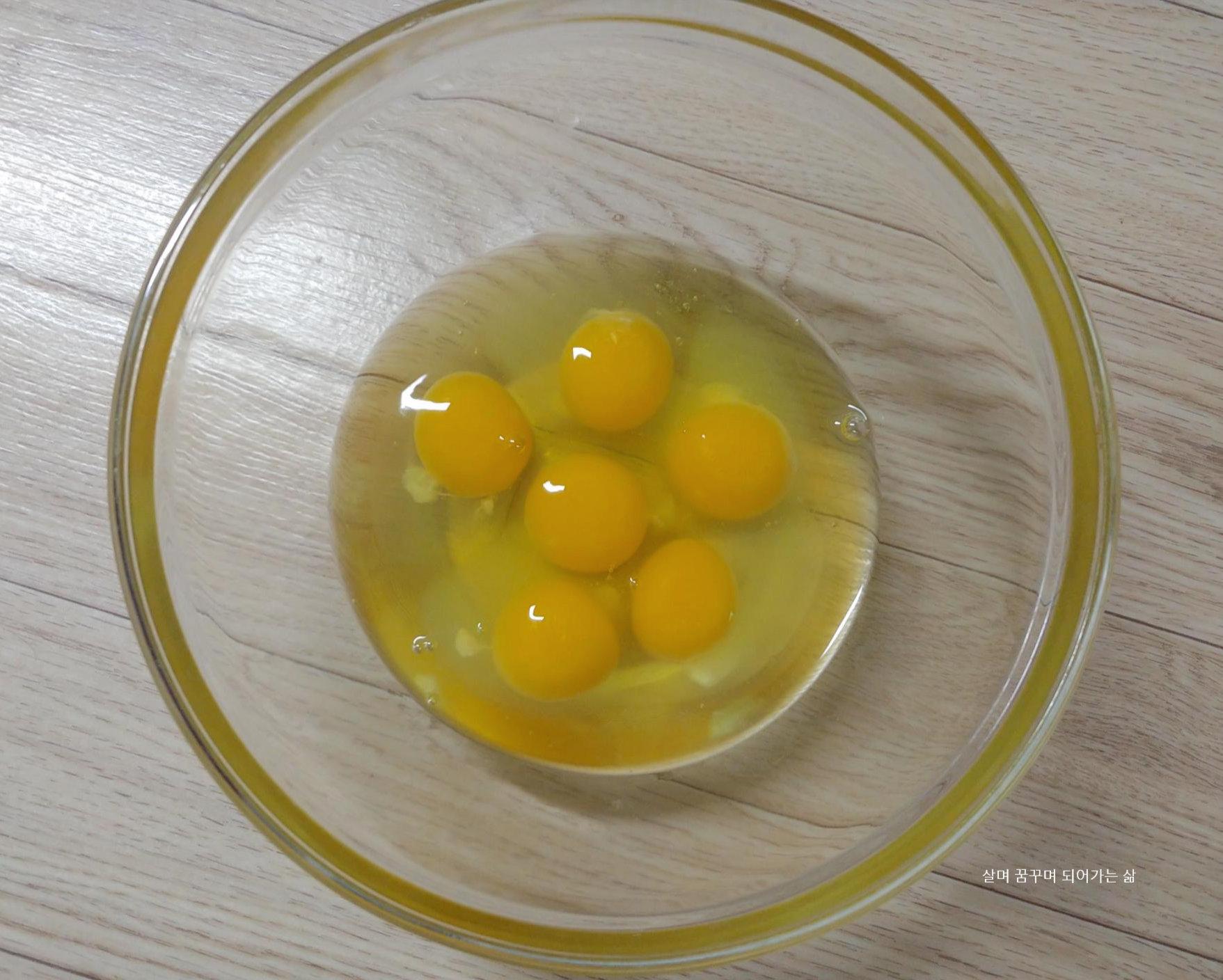 6개의 계란을 깨뜨려서 계란물을 만듭니다.