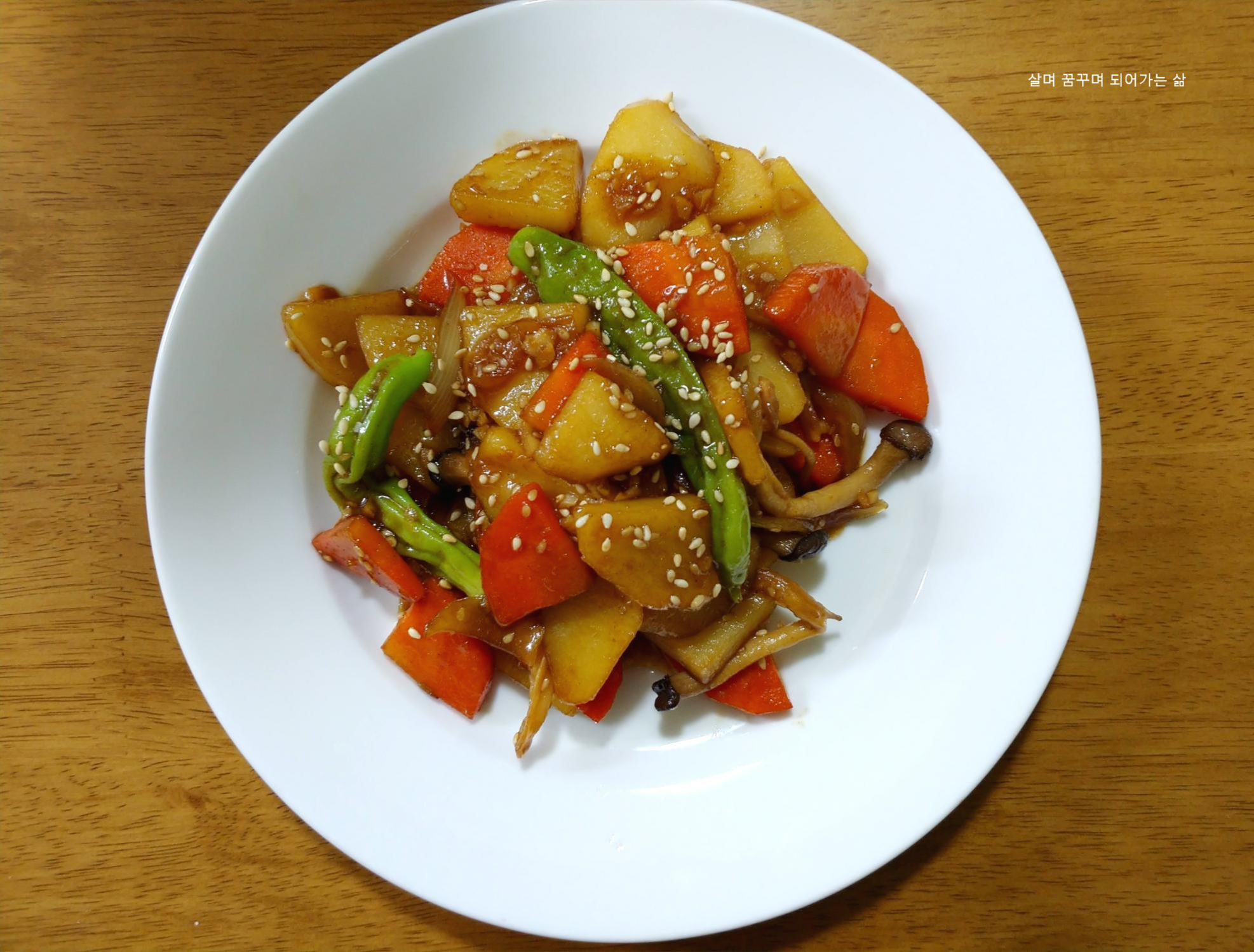 감자도 집어먹고 당근도 먹고 꽈리고추 , 양념이 잘 베여서 역시 맛있네요.