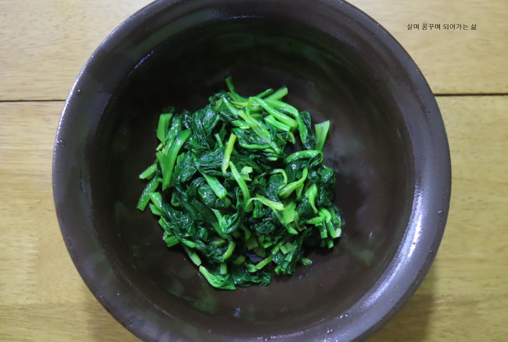 그릇에 시금치를 담습니다.
