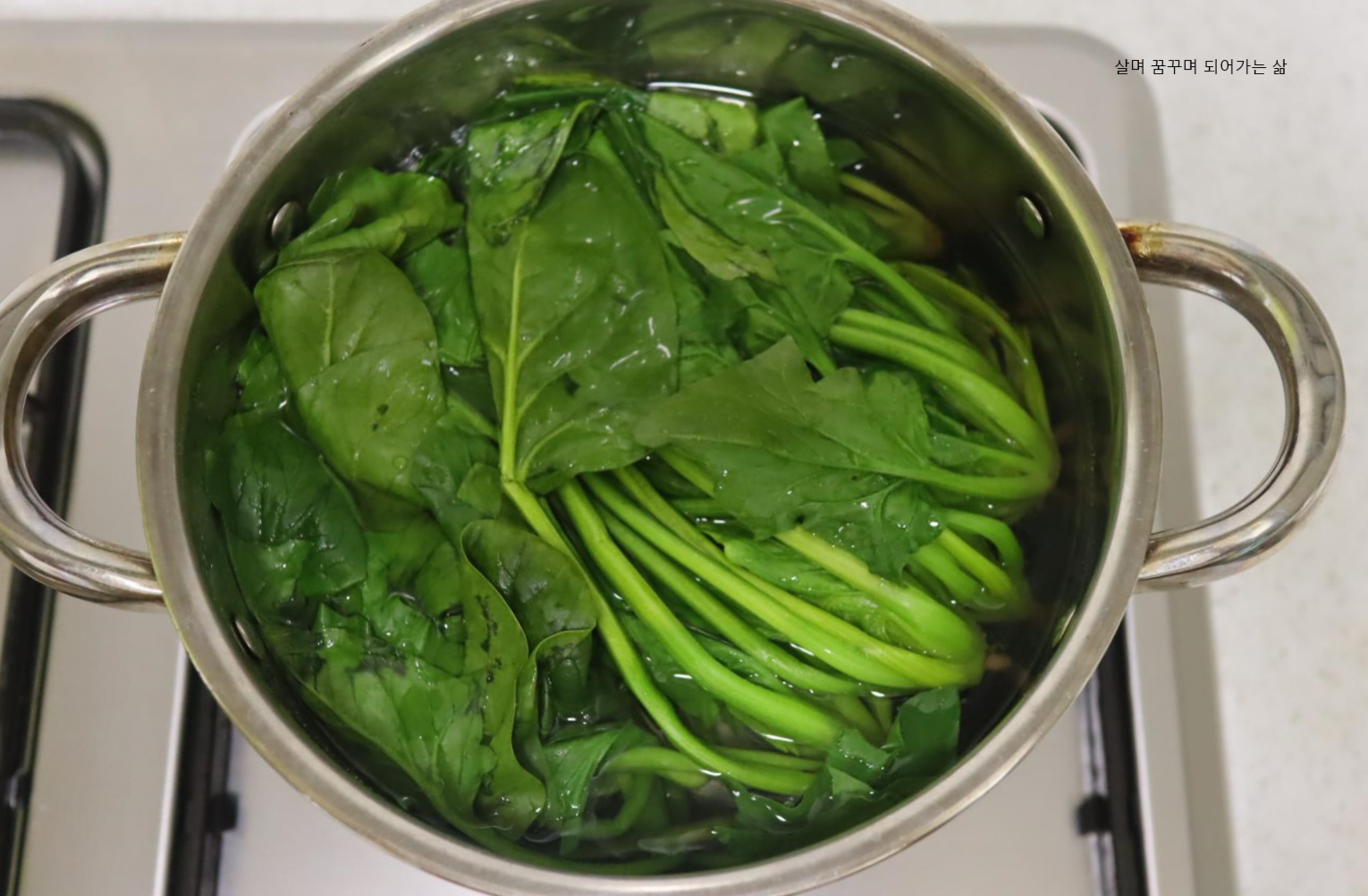 시금치는 살짝 데치기만 하면 됩니다.