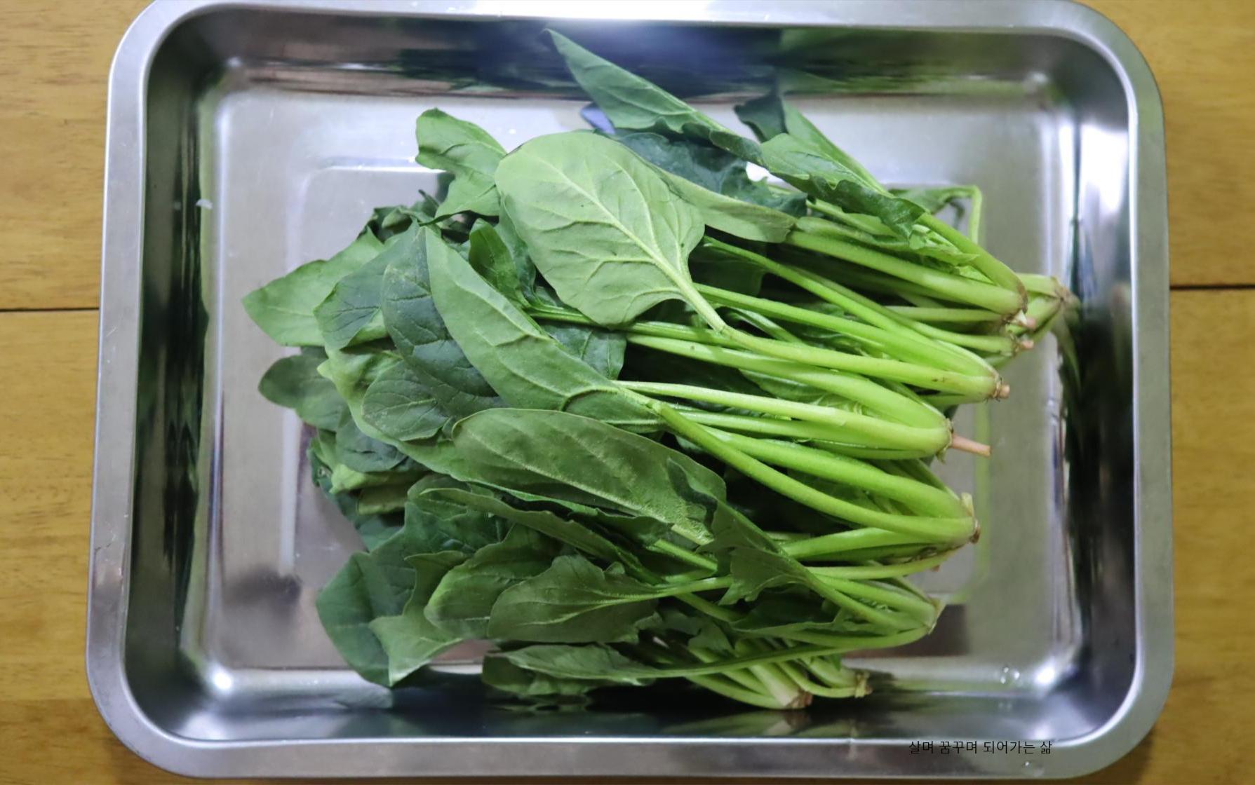 시금치는 떡잎제거하고 기본적인 손질을 해 줍니다.
