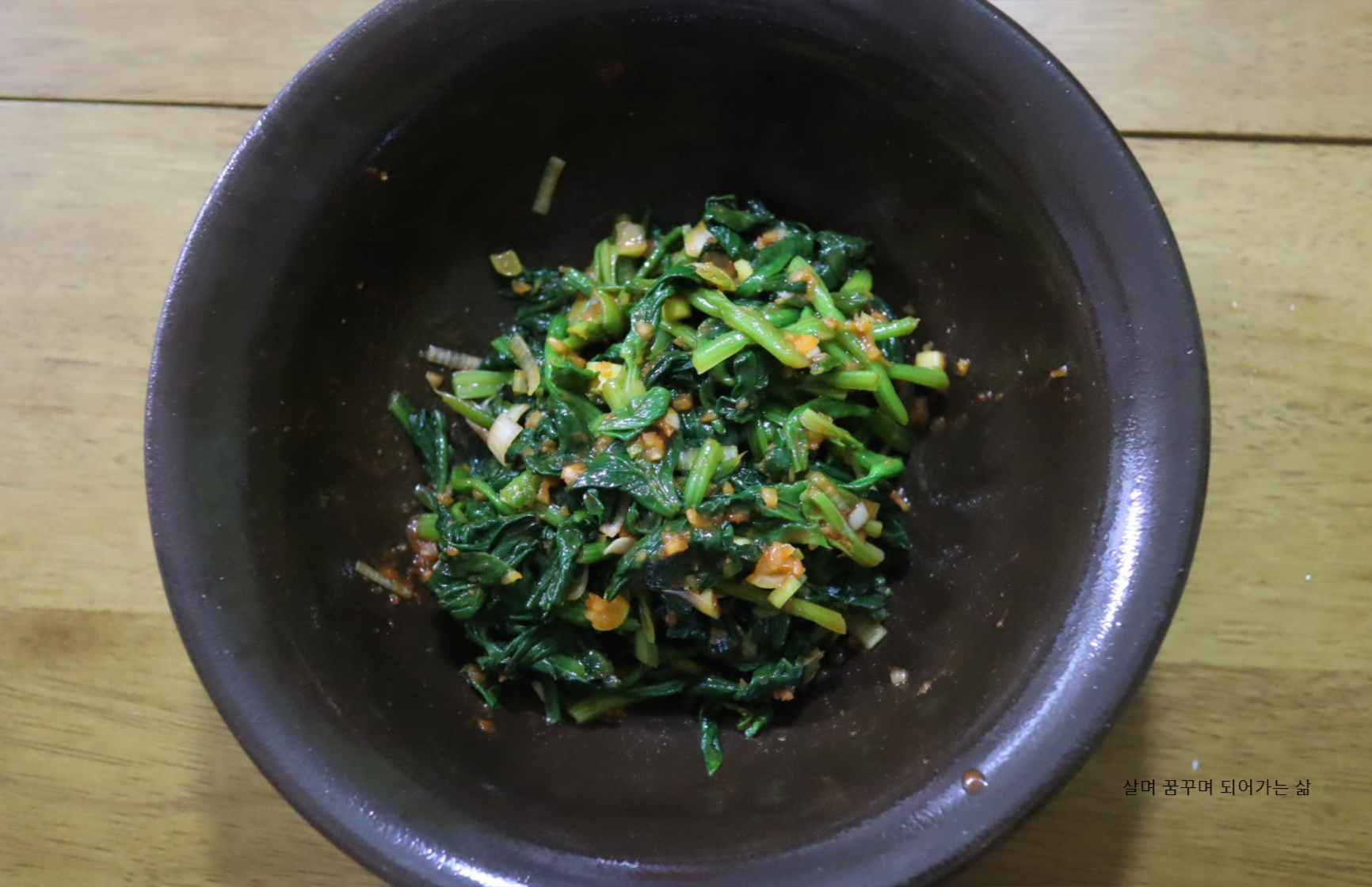 시금치나물과 고추장이 만나니까 간간한 나물이 되었어요.