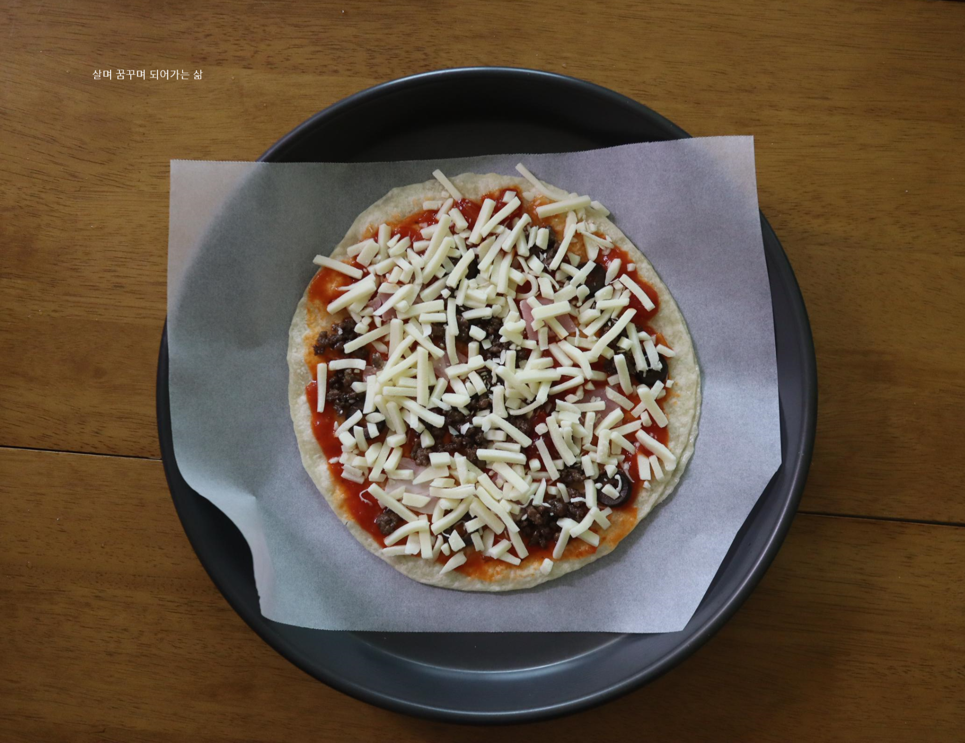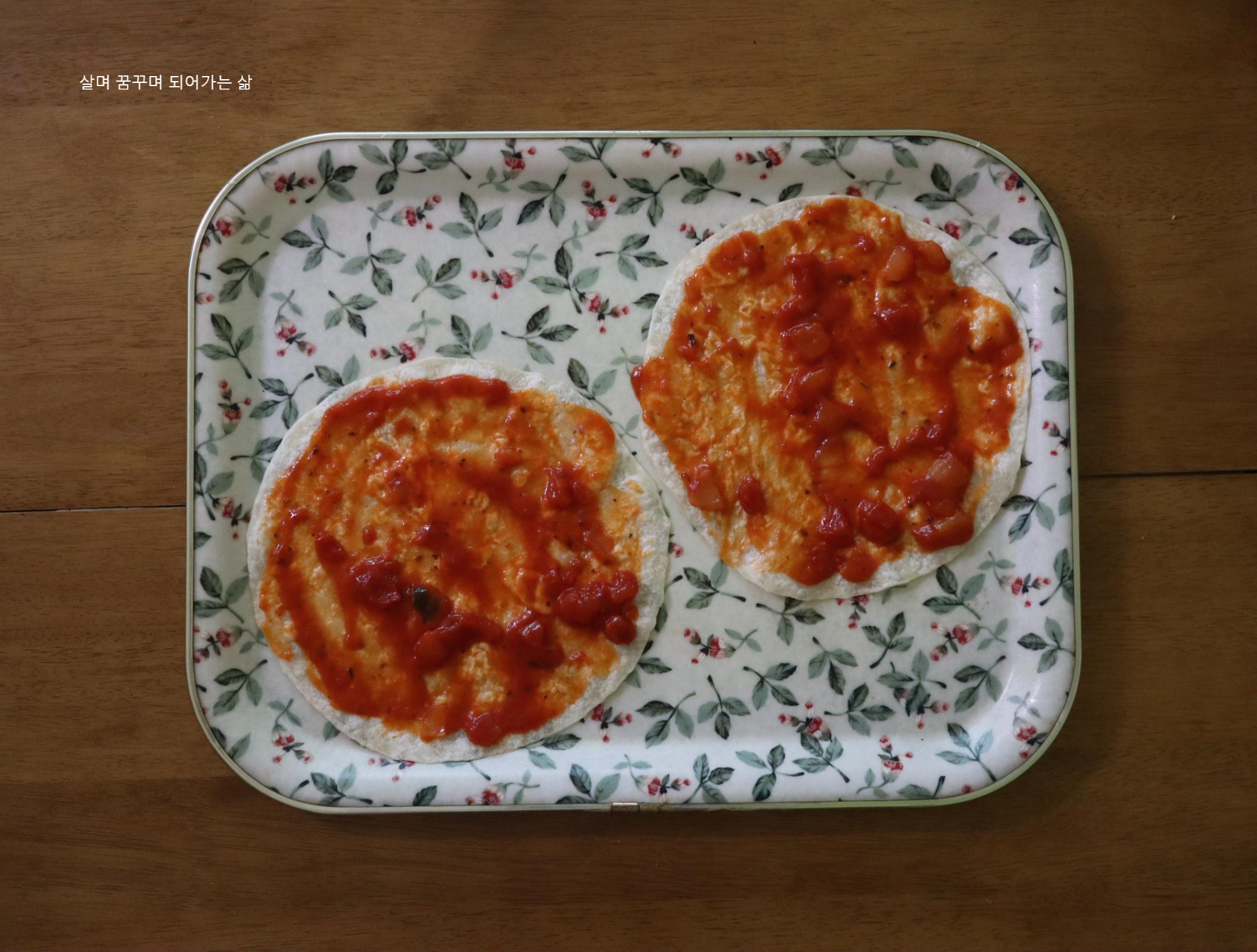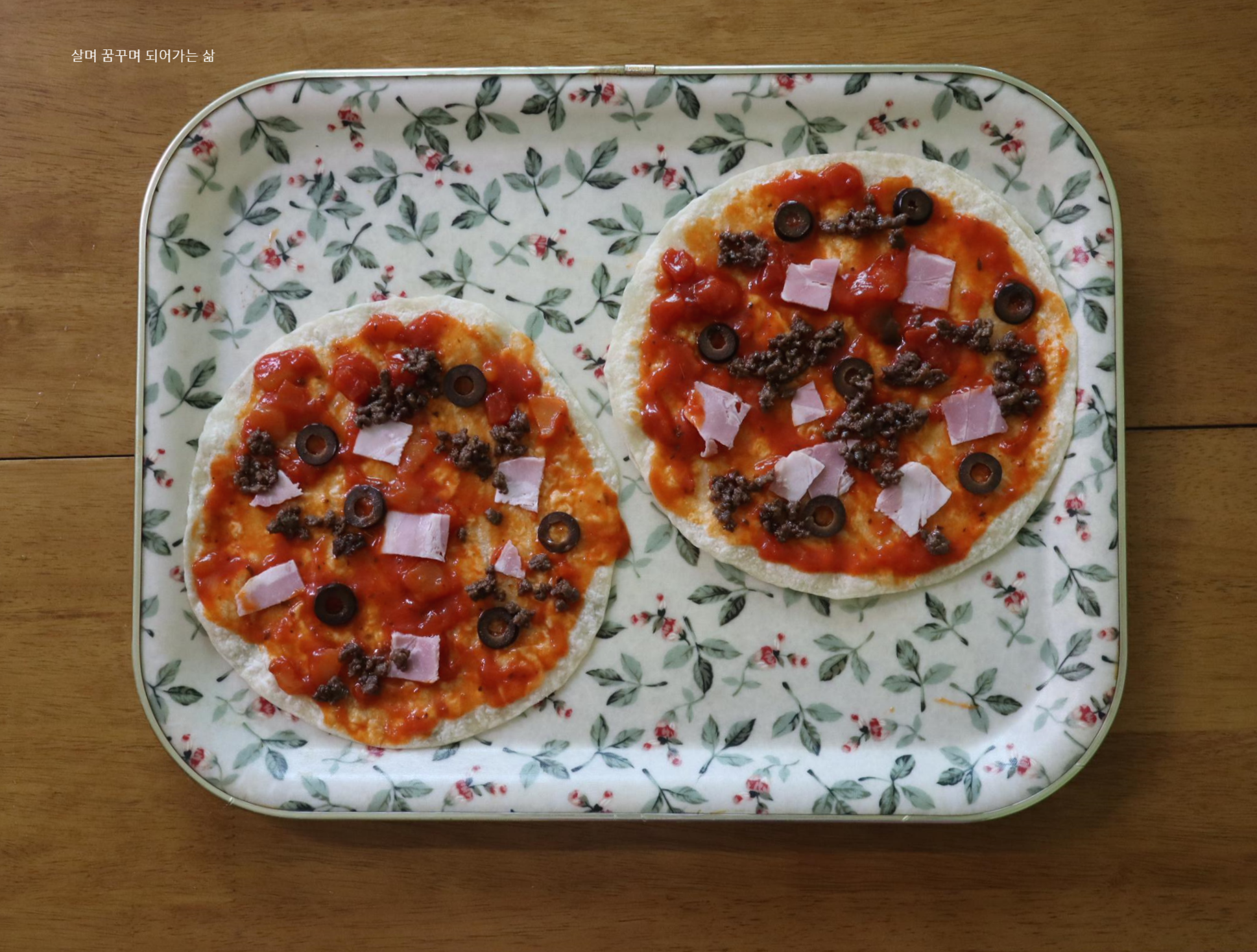 우리밀 또띠아로 피자를 만드니까 참 쉽게 간편해서 좋아요.