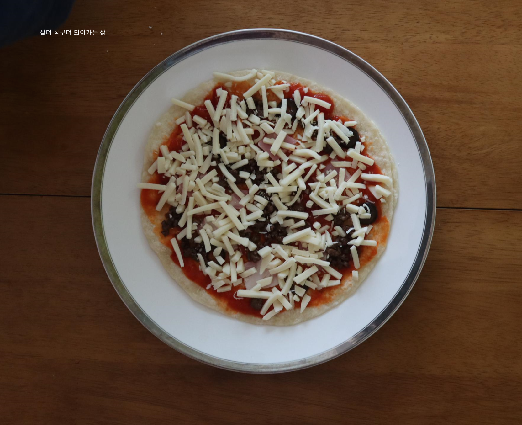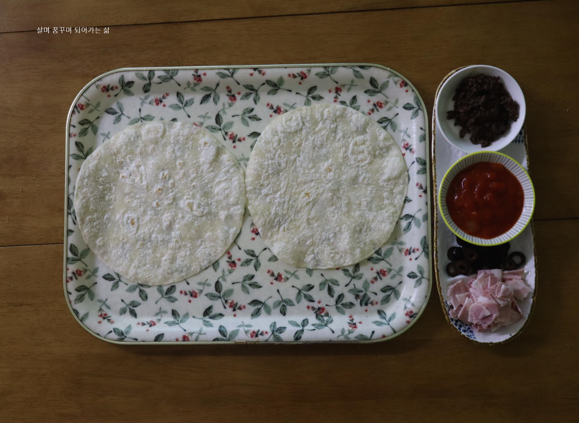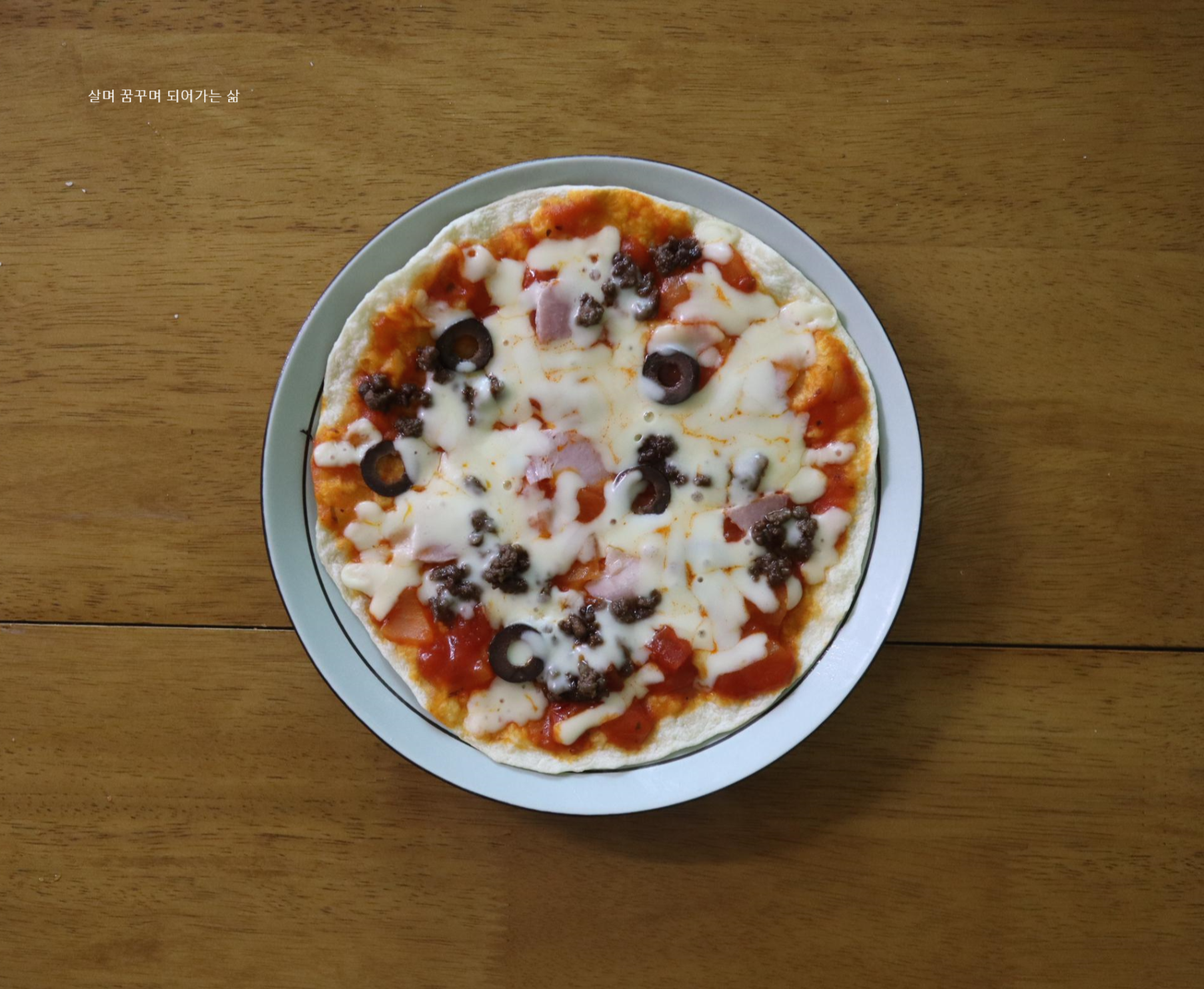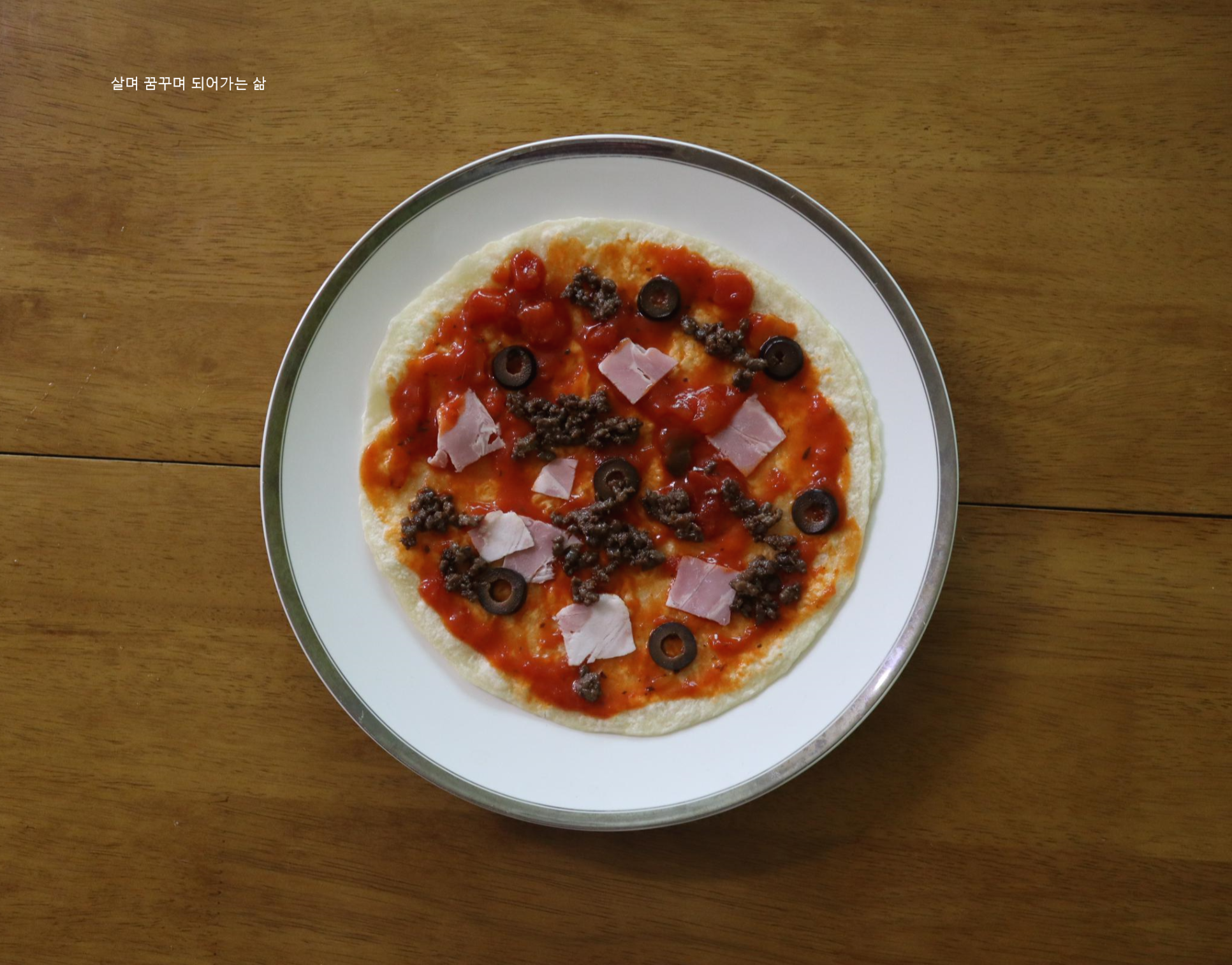 우리밀 또띠아로 피자를 만드니까 참 쉽게 간편해서 좋아요.