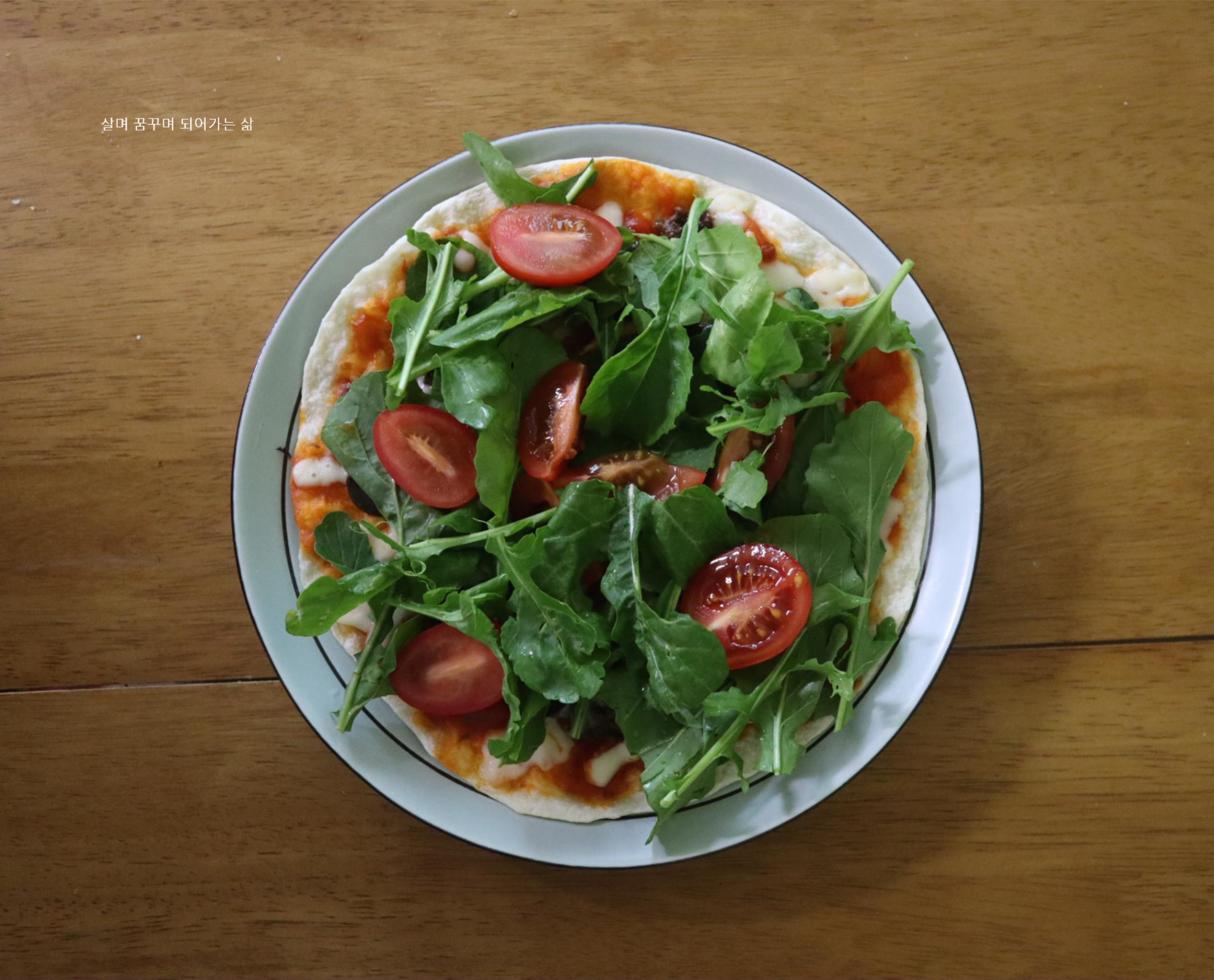 싱싱한 루꼴라를 이용해서 간편하게 만들수 있는 피자를 만들었어요.