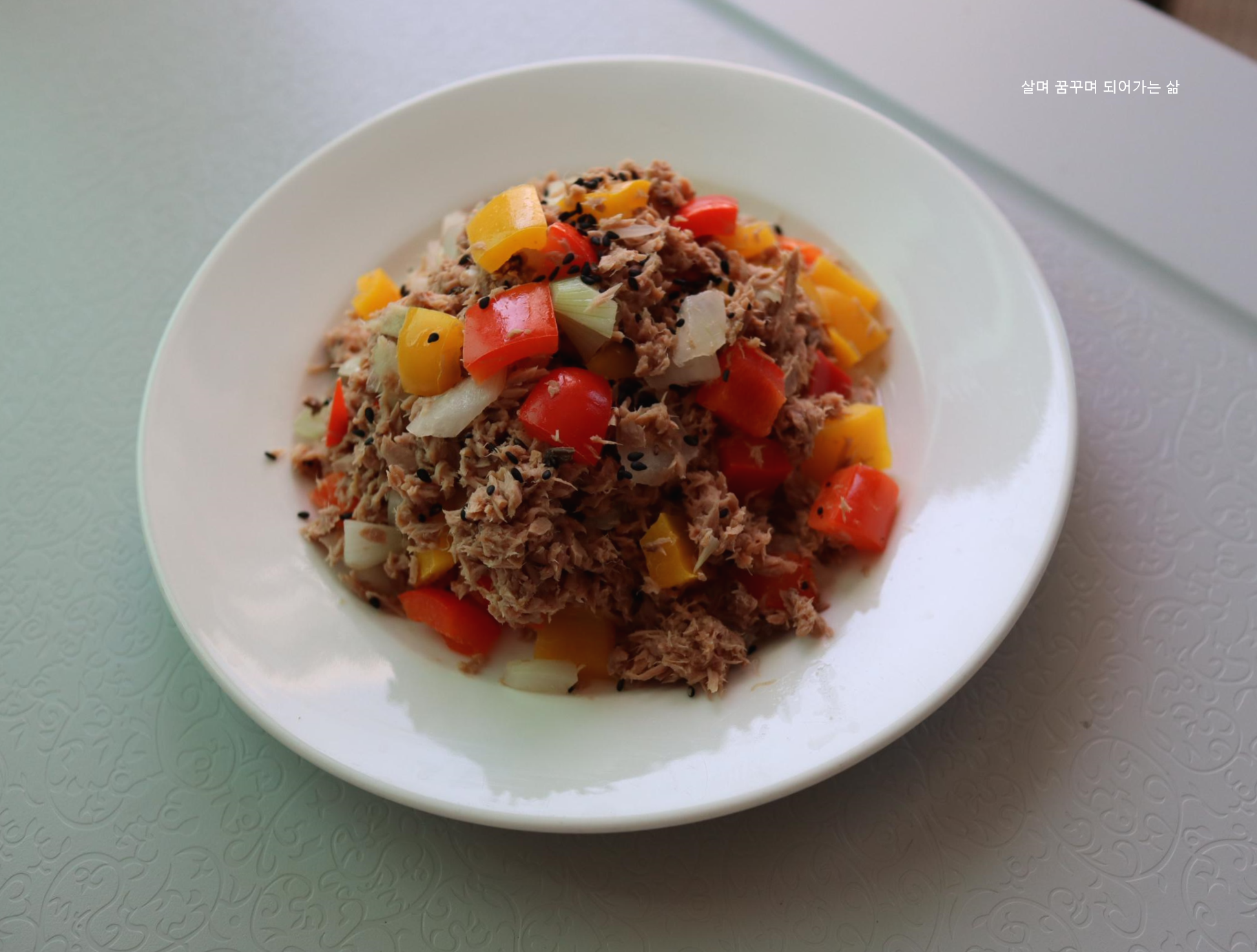 참치살과 파프리카와 양파가 만났을 뿐인데... 계속 젓가락이 가네요