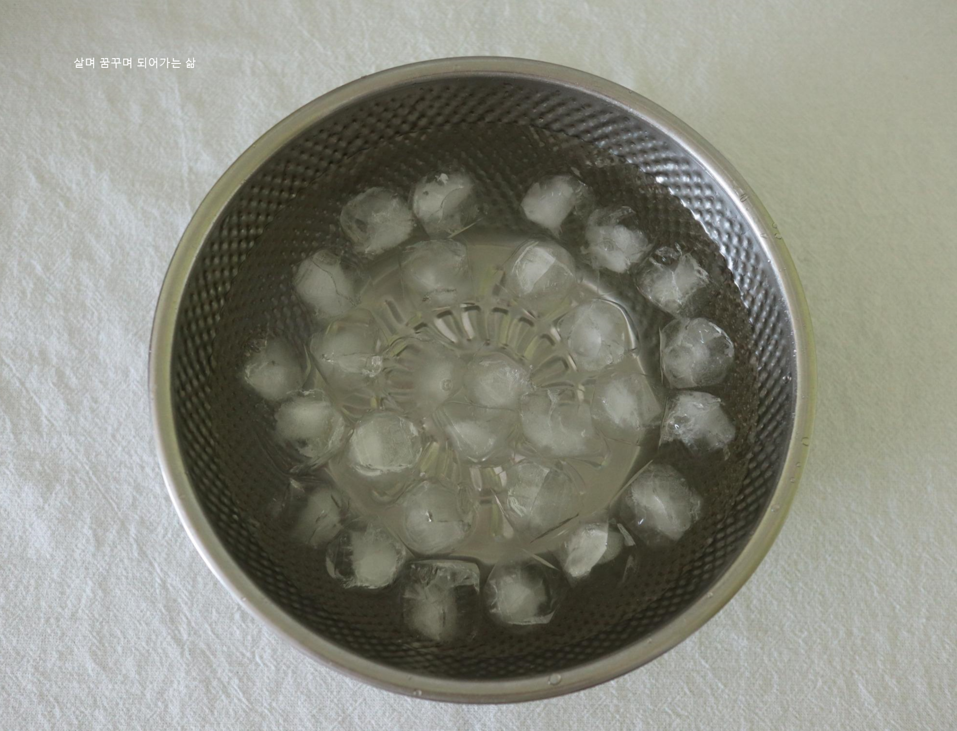 아삭한 콩나물 무침을 만들기 위해 얼음물을 준비했어요.