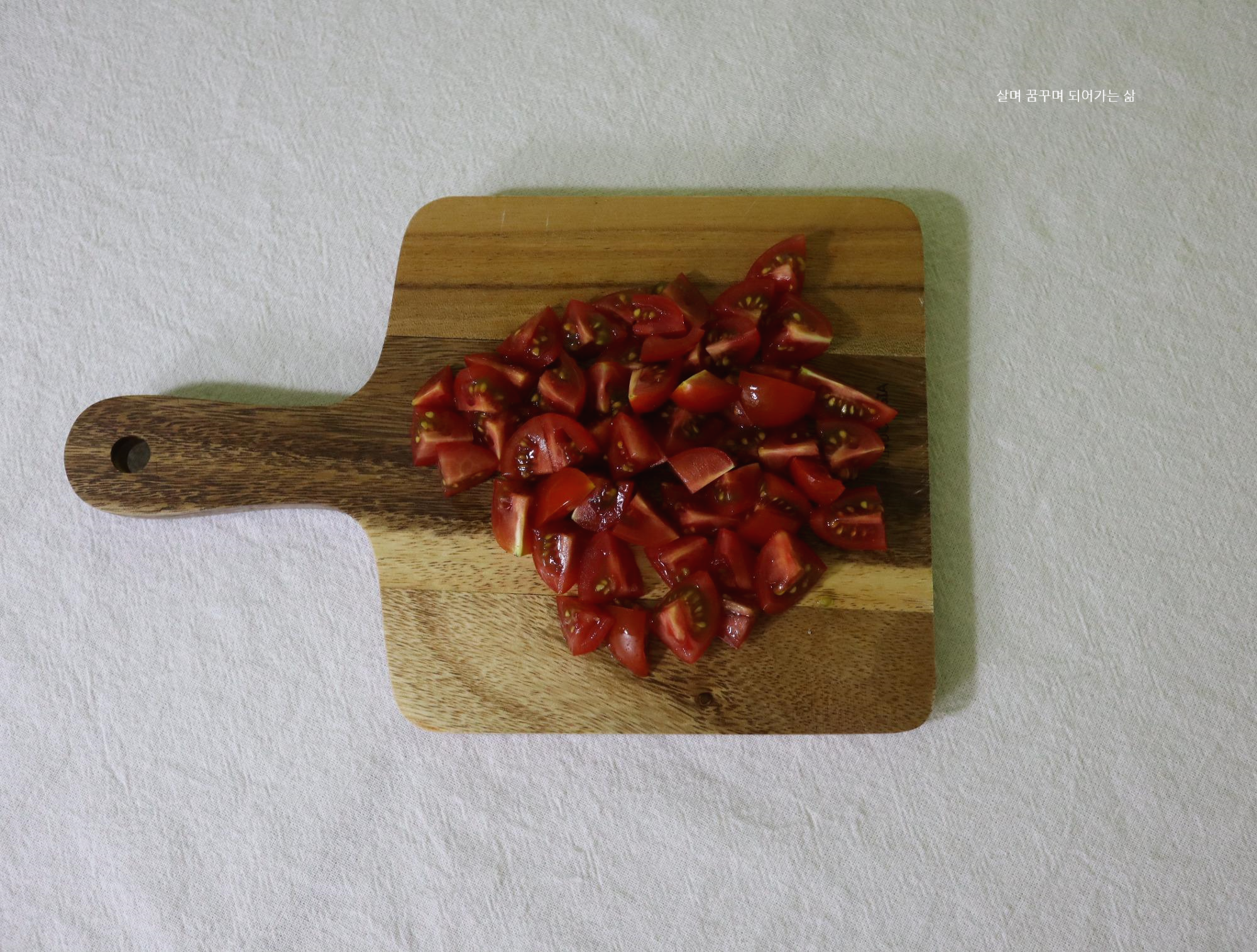 토마토는 황산화효능이 뛰어나니 껍질째 모두 사용했는데 껍질이 부담스럽거나 거슬리지 않았어요.