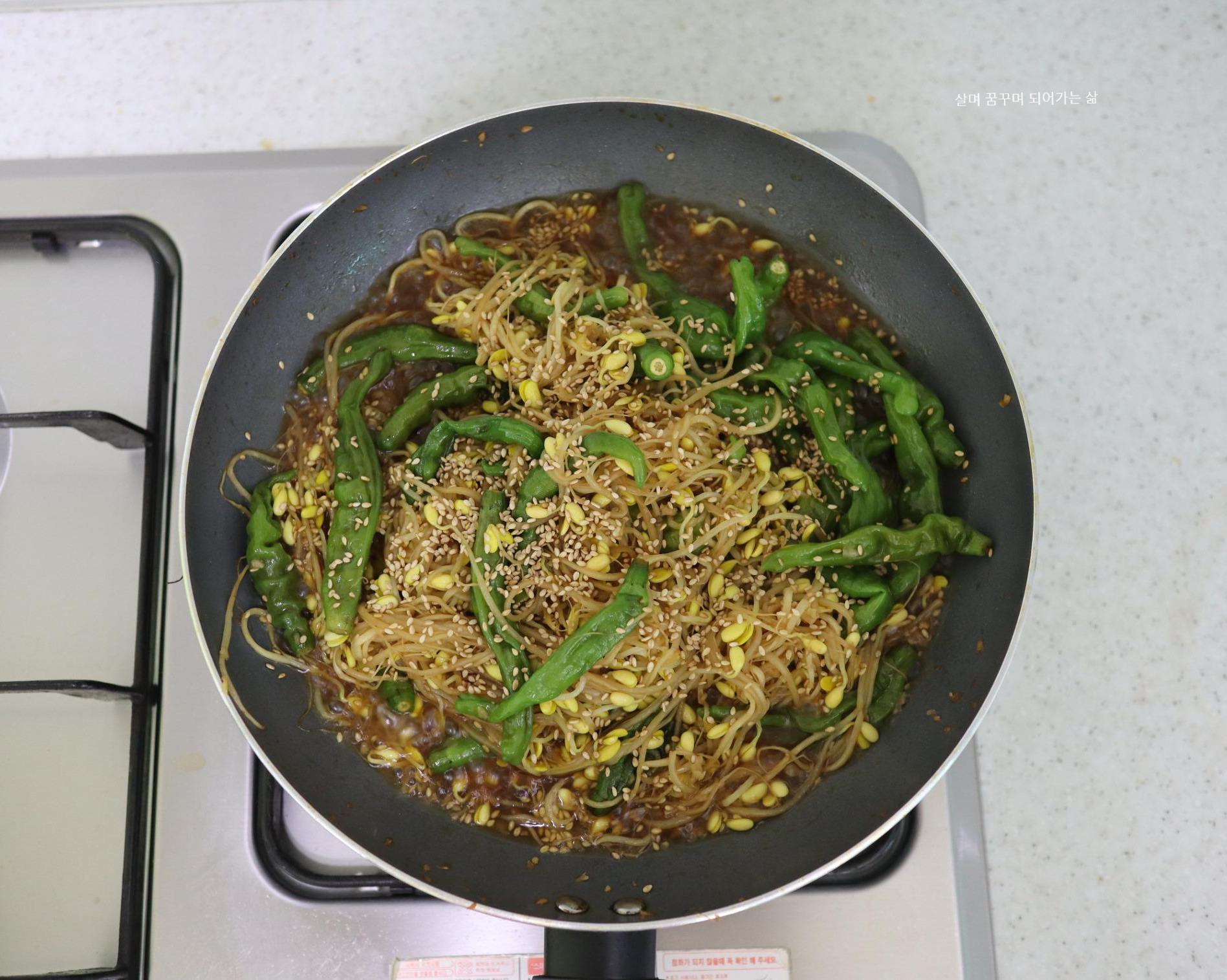 한 입먹어보니 양념이 잘 스며들었고 꽈리고추도 콩나물도 맛있습니다.