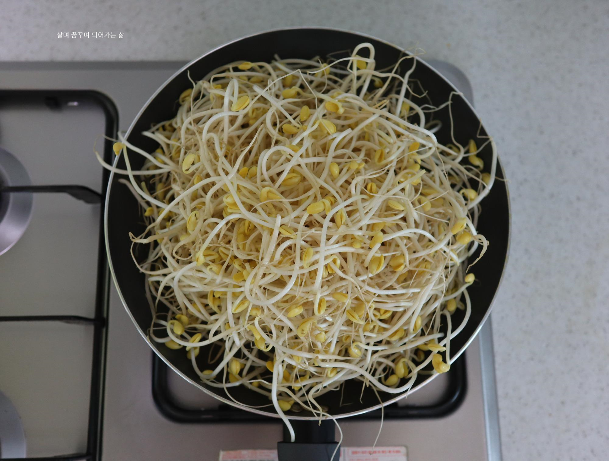 콩나물은 봉지를 뜯으니 콩나물 머리가 썩은게 보여서 떼어내고 다듬어서 꺠끗히 씻었습니다.