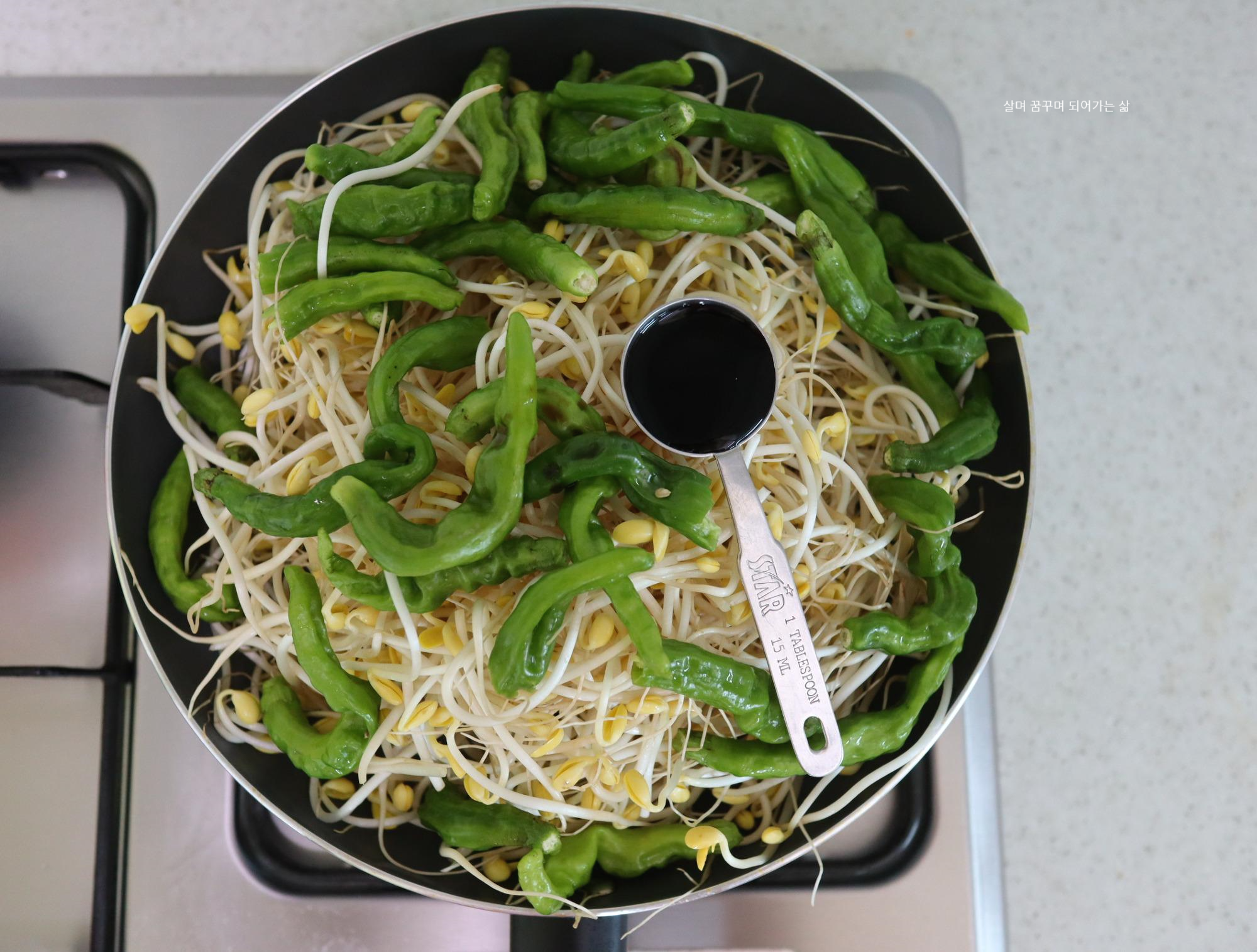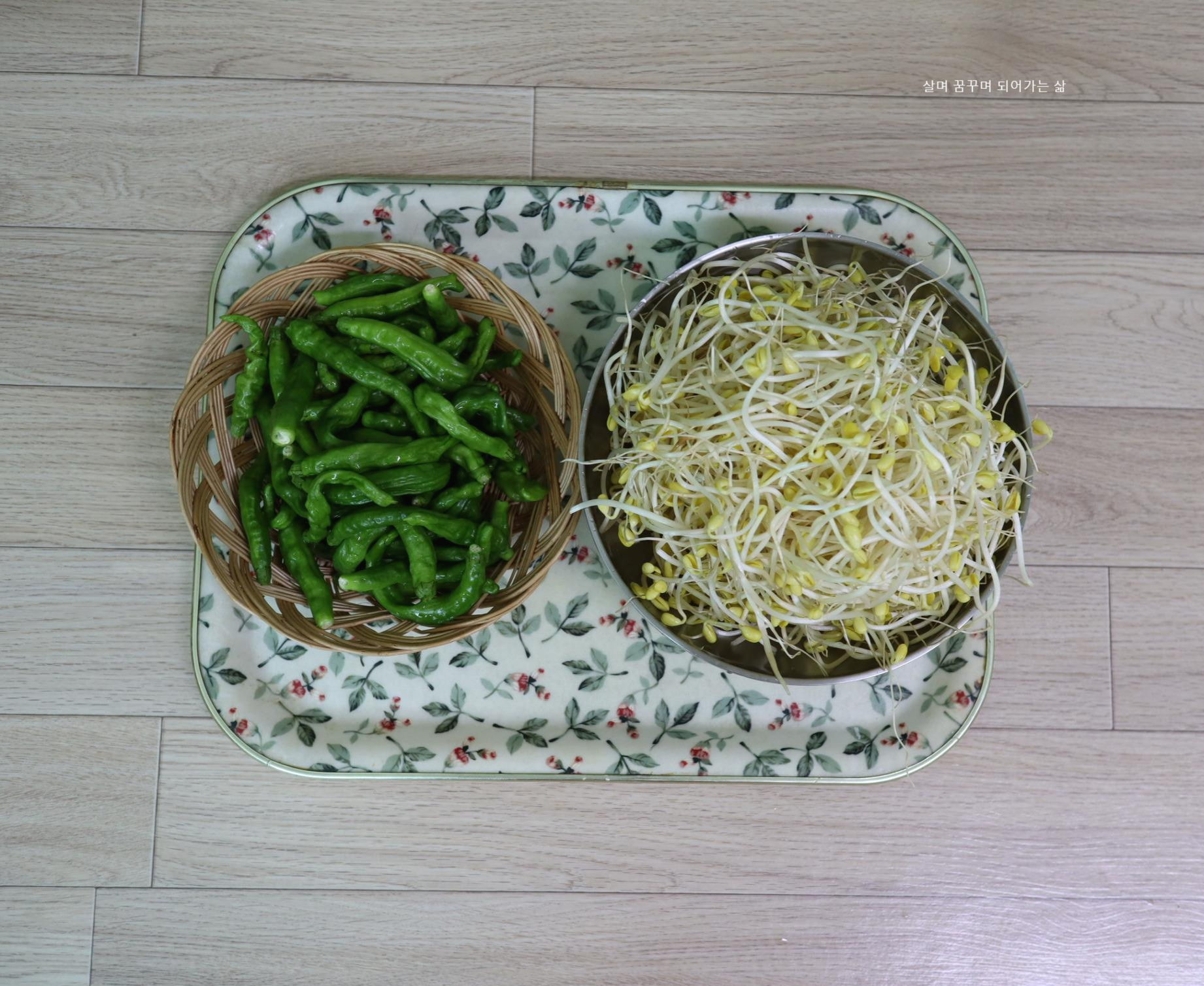 꽈리고추와 콩나물의 양을 적어놓지 않아서 비율로 적습니다.