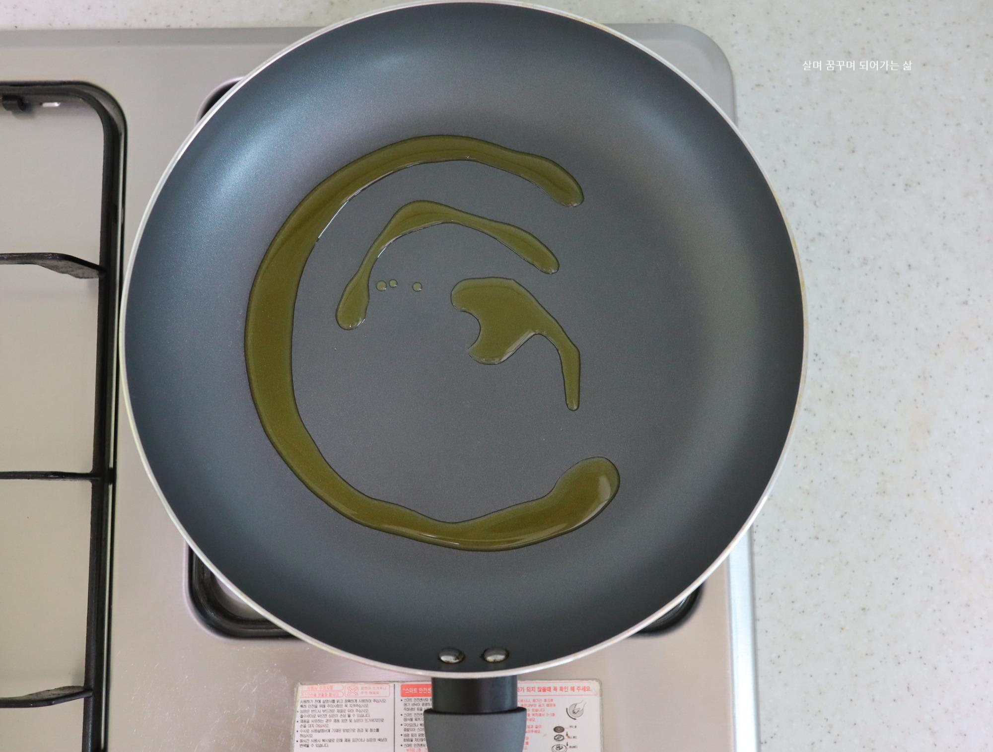 그리고 들기름을 둘러 주었습니다. 들기름이 없다면 식용유를 둘러 주어도 좋습니다.