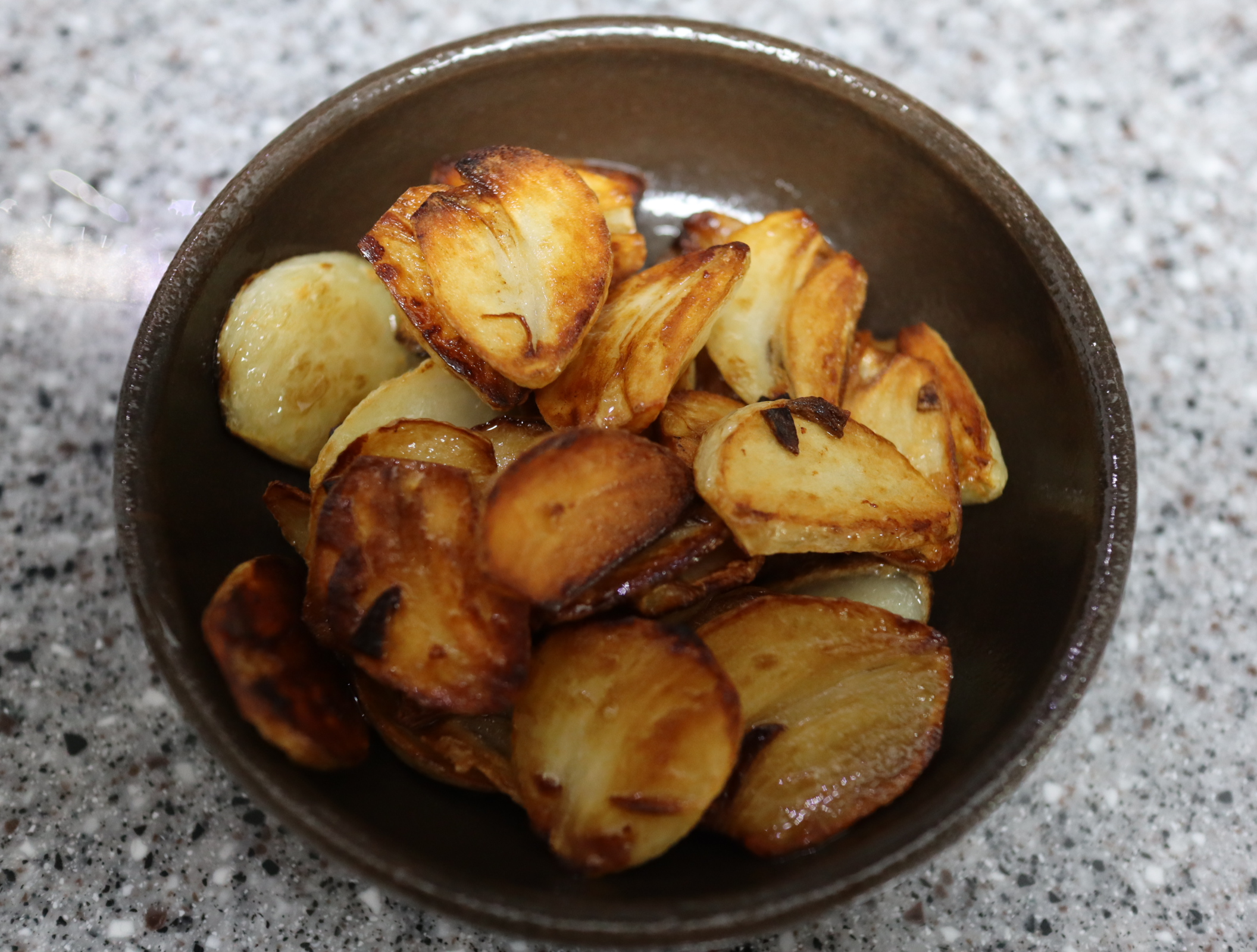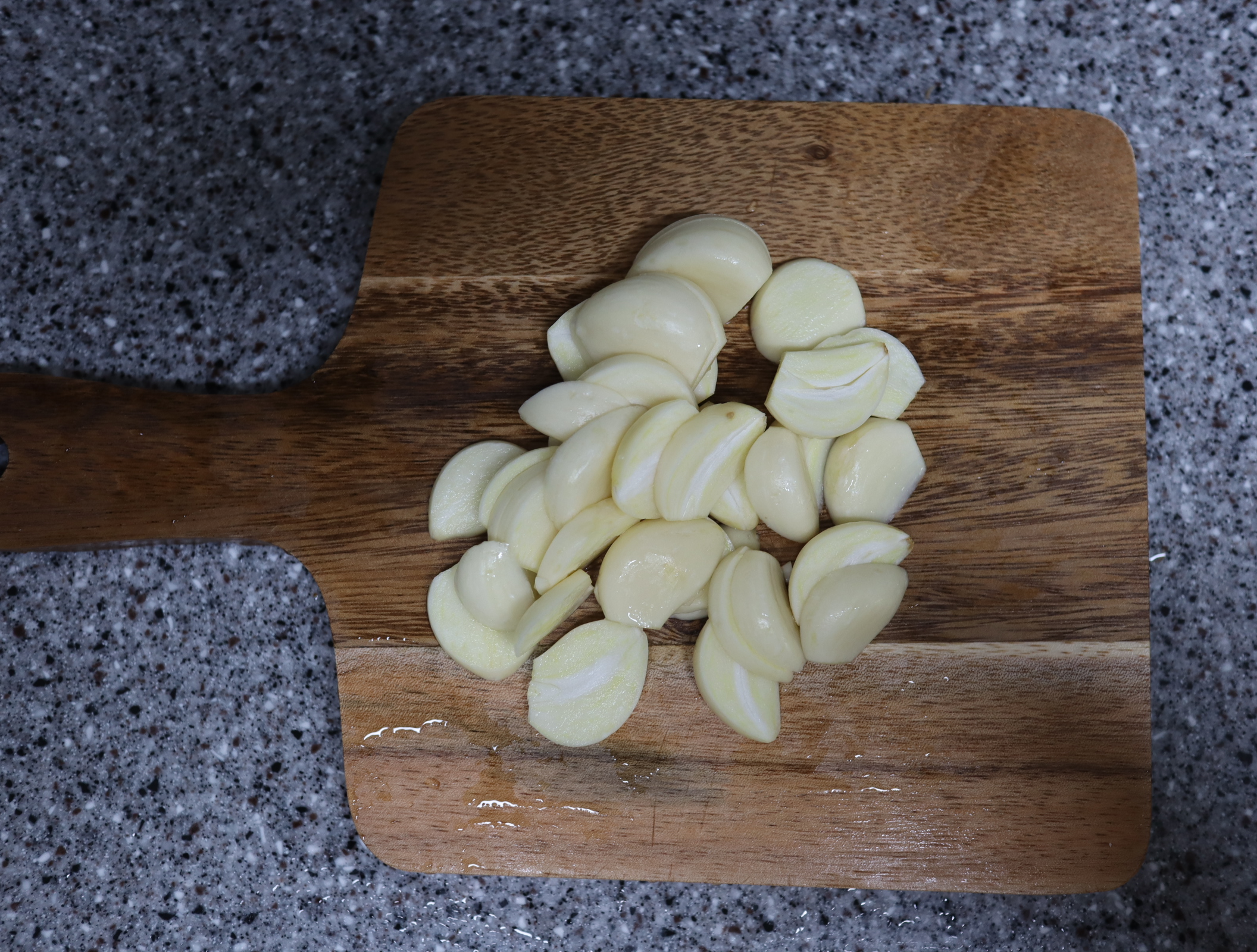 통마늘은 익히는데 시간이 다소 걸리는 탓에 2~3조각으로 나누어 주었습니다. 슬라이스 해서 자르니 마늘조각들이 많아집니다.