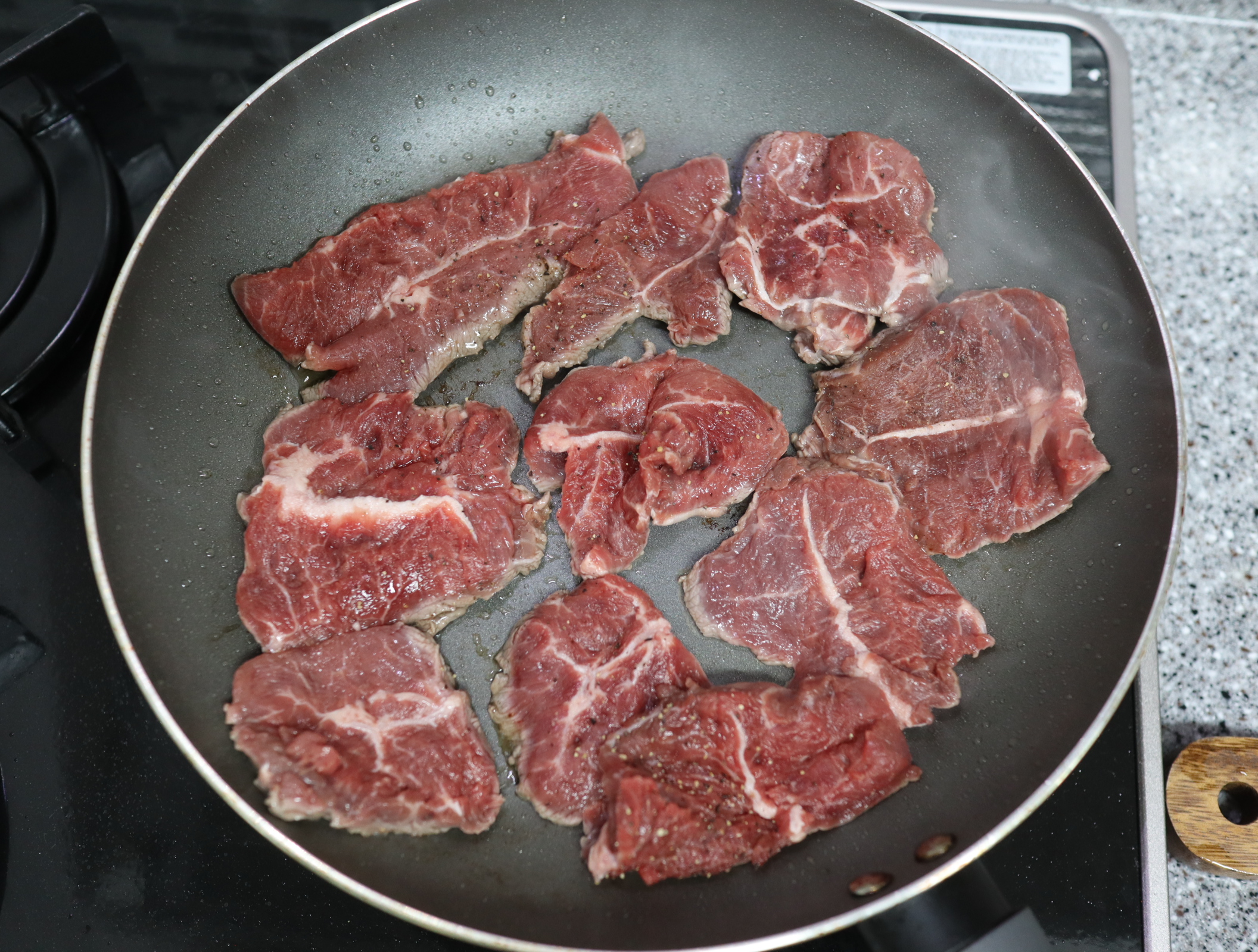 이번엔 소금, 후추로 간을 해서 재워둔 소고기를 구워줍니다.