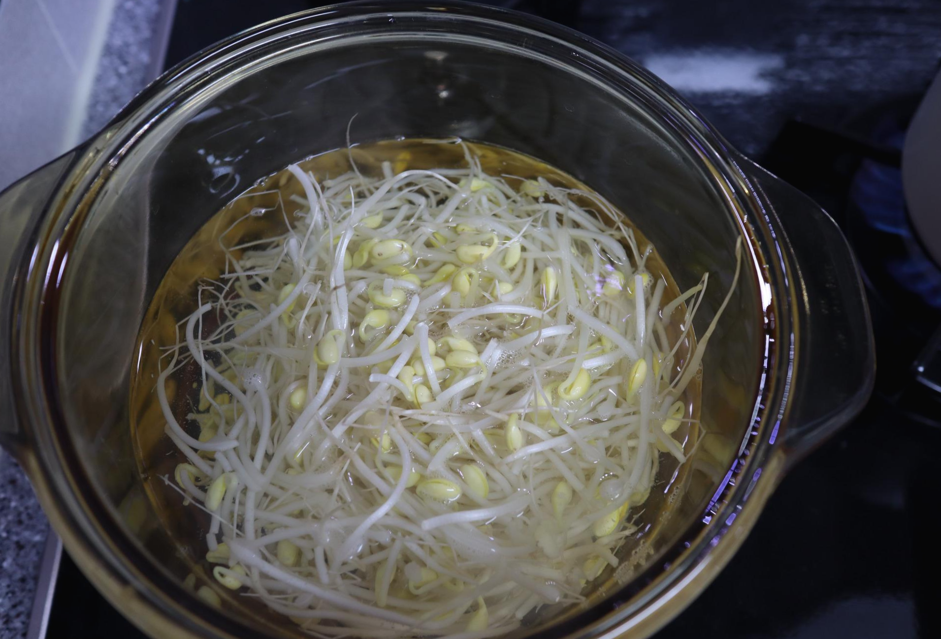 콩나물은 깨끗히 씻어서 물기를 제거합니다.